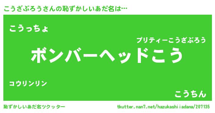 ヘコむあだ名 | 『豆乳』『こうざぶろう(爆)』 |
