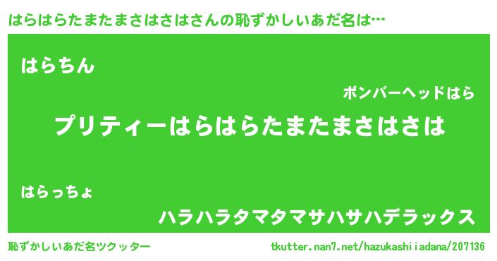 意味不明あだ名 | 『住所不定無職はらはらたまたまさはさは(85歳)』 |