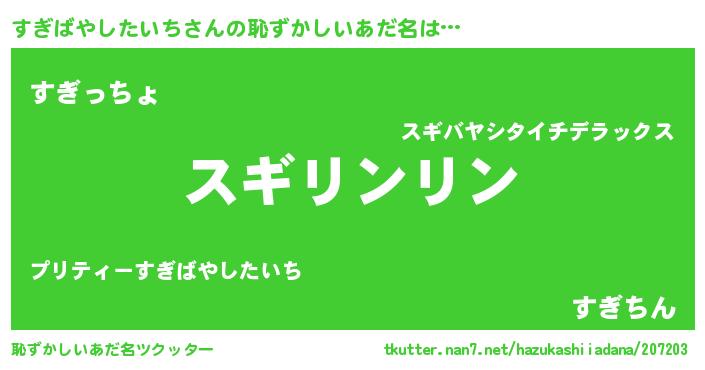 ポケモン風あだ名 | 『スーギイ』『ヒスギバヤシタイチ』 |
