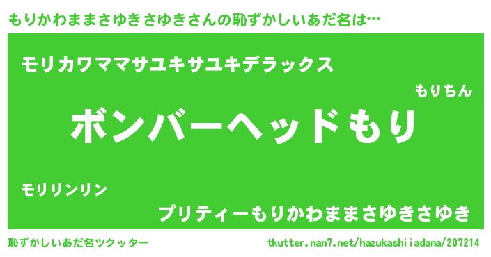| 男性向けラノベタイトル風あだ名 | 『うちのもりかわままさゆきさゆきが世界を掌握している!』 |