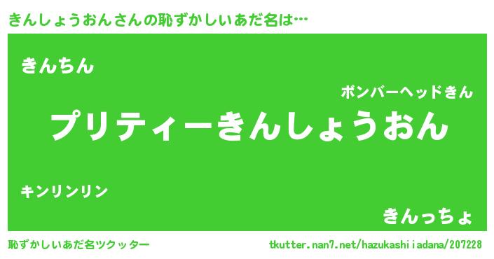 | ヘコむあだ名 | 『きんふぇ~』『きんしょうおん(遠い目)』 |