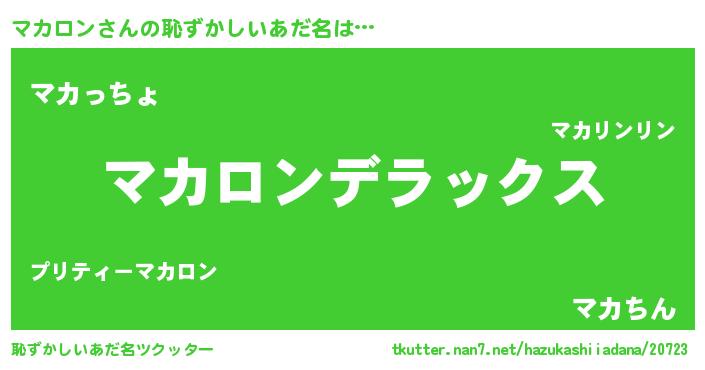 | 男性向けラノベタイトル風あだ名 | 『マカロン~年齢イコール彼女いない歴の魔法使い~』 |