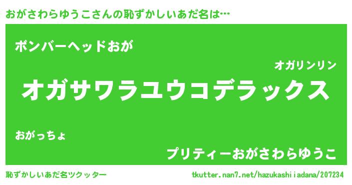 | 欧米人風あだ名 | 『おがさわらゆうこ・ステッグマイヤー』 |
