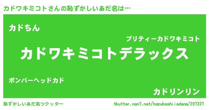 | 意味不明あだ名 | 『自称カドワキミコト』 |