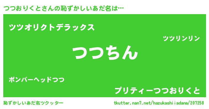 ヘコむあだ名 | 『つつおりくと(苦笑)』『つつっふぃ~』 |