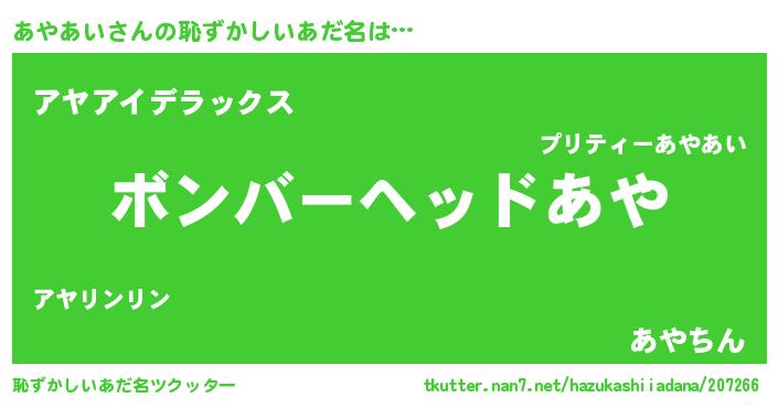 | ヒーロー風カッコイイあだ名 | 『天空の使者あやあい』『ネオアヤアイ』 |