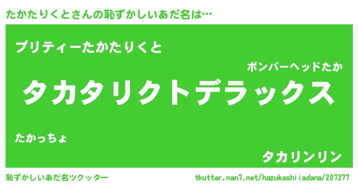 ファンタジー風あだ名 | 『ゼタカトゥ』『カークタカラー』 |