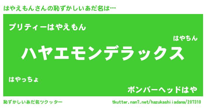 ヒーロー風カッコイイあだ名 | 『最強戦士ハヤエモン』『仮面ハヤダー』 |