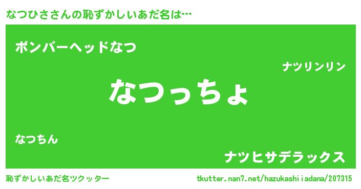 | ヒーロー風カッコイイあだ名 | 『ウルトラなつひさマン』『仮面ナツダー』 |
