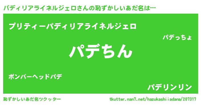 | 意味不明あだ名 | 『永久保存パディリアライネルジェロ』 |
