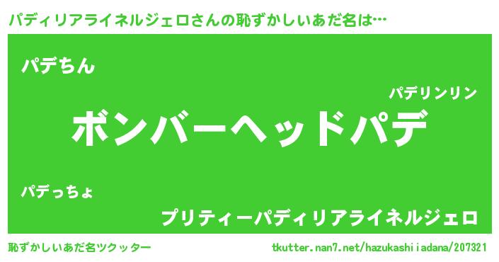 | 可愛いあだ名 | 『パデぷりん』『パデちゅっちゅ』 |