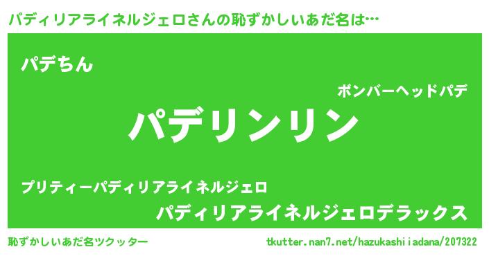 | 女子向けラノベタイトル風あだ名 | 『パディリアライネルジェロの卵を拾いまして』 |