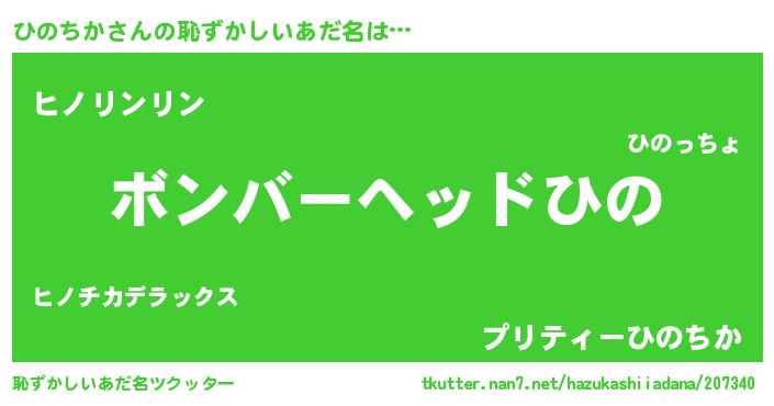 | 欧米人風あだ名 | 『ダニエルひのちか』『ウサインひのちか』 |