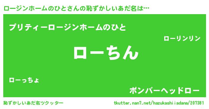 | ヘコむあだ名 | 『ロージンホームのひと(小並感)』『ローお』 |