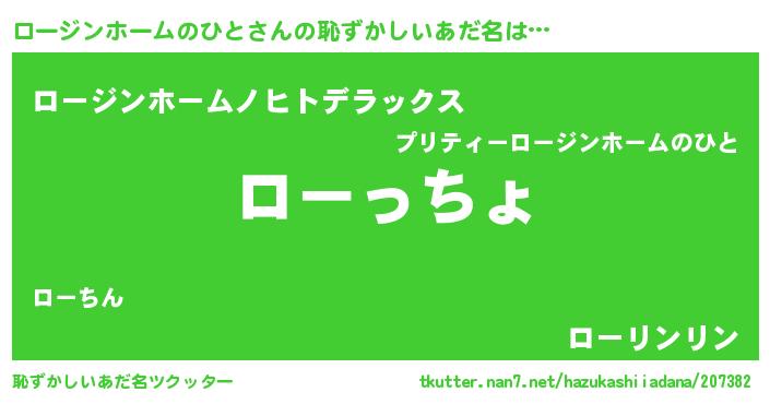 | 男性向けラノベタイトル風あだ名 | 『やはりロージンホームのひとの青春ラブコメはまちがっている 』 |
