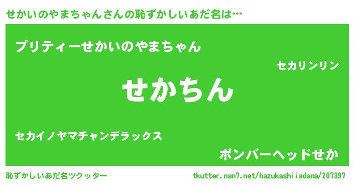 | ヘコむあだ名 | 『せかいのやまちゃん(苦笑)』『せかにゅー』 |