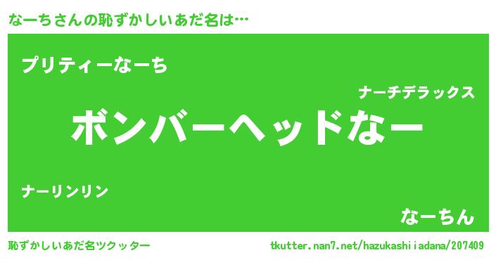 | ヘコむあだ名 | 『なーもー』『なーち(小並感)』 |