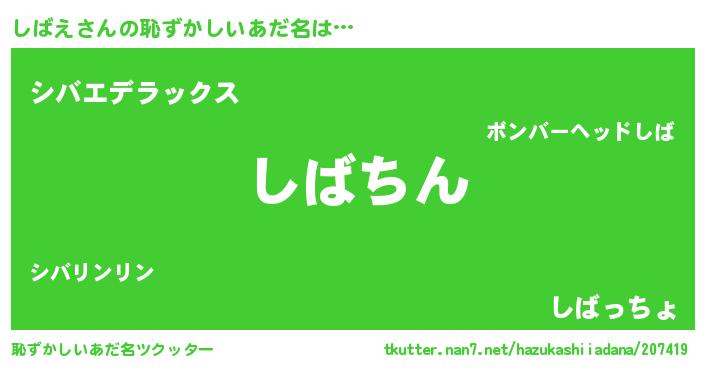 | 意味不明あだ名 | 『住所不定無職しばえ(77歳)』『自称しばえ』 |