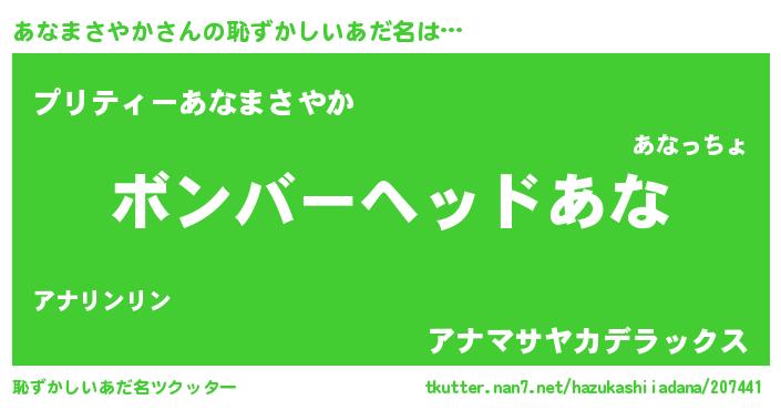 | 欧米人風あだ名 | 『ダニエルあなまさやか』 |