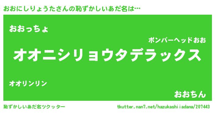 | 意味不明あだ名 | 『自称おおにしりょうた』 |