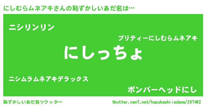 | 意味不明あだ名 | 『にしむらムネアキフォーエバー』 |