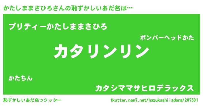 | 男性向けラノベタイトル風あだ名 | 『かたしままさひろの嫁は女の子じゃないと思った?』 |