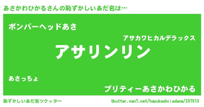 | 男性向けラノベタイトル風あだ名 | 『ダンジョンにあさかわひかるを求めるのは間違っているだろうか』 |