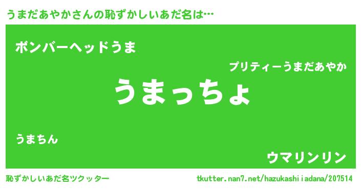 | 肩書あだ名 | 『うまだあやか機長』『うまだあやか大佐』 |