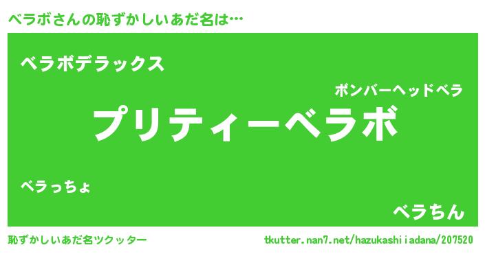 | ヘコむあだ名 | 『べラっふぃ~』『べラボ(小並感)』 |