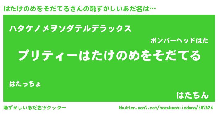 | 意味不明あだ名 | 『住所不定無職はたけのめをそだてる(62歳)』 |