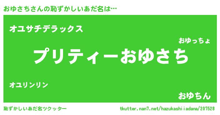 | 胡散臭い通販商品みたいなあだ名 | 『必ず成功する霊験あらたかなお札…その名も「おゆさち」』 |