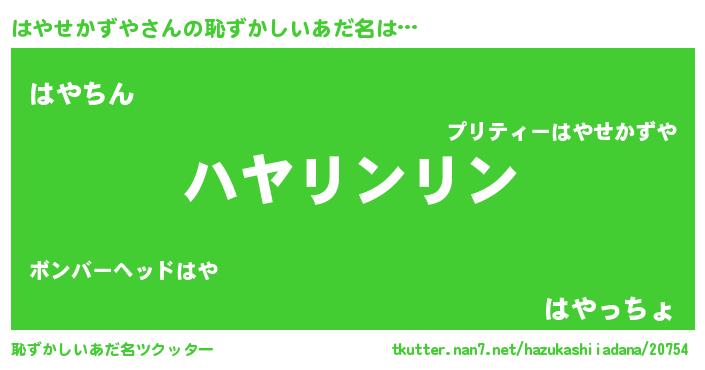 | 男性向けラノベタイトル風あだ名 | 『うちのはやせかずやが世界を掌握している!』 |