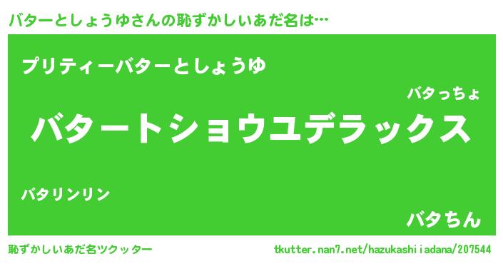 | 欧米人風あだ名 | 『ケンブリッジバターとしょうゆ』 |