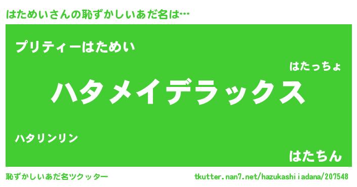 | ヒーロー風カッコイイあだ名 | 『究極戦士ハタメイ』『スーパーハタメイ』 |