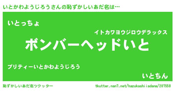 | 男性向けラノベタイトル風あだ名 | 『いとかわようじろうに滅ぼされるだけの簡単なお仕事です』 |