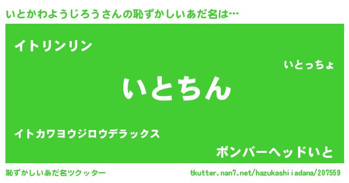 | ヘコむあだ名 | 『いとかわようじろう(爆)』『いとっぺ』 |