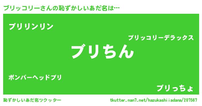 | ヘコむあだ名 | 『ブリッコリー(震え声)』『ブリぷりん』 |