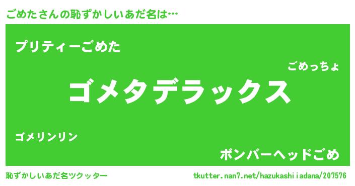 | 女子向けラノベタイトル風あだ名 | 『闇のごめた』『ごめた姫と円卓の騎士』 |