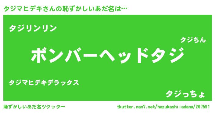 | 意味不明あだ名 | 『住所不定無職タジマヒデキ(11歳)』 |