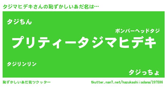 | ヒーロー風カッコイイあだ名 | 『スーパータジマヒデキ』『仮面タジダー』 |