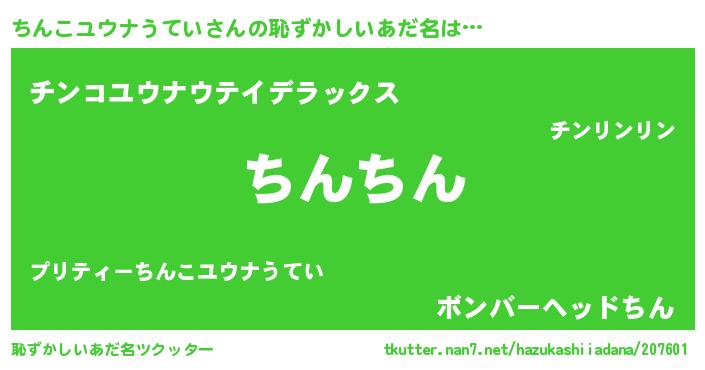 | ヘコむあだ名 | 『ちんこユウナうてい(笑)』『ちんっちょ』 |