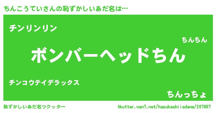 | 意味不明あだ名 | 『住所不定無職ちんこうてい(40歳)』 |