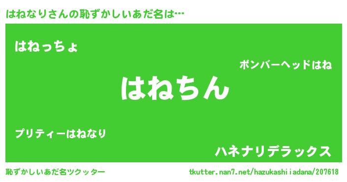 | 意味不明あだ名 | 『永久保存はねなり』『自称はねなり』 |