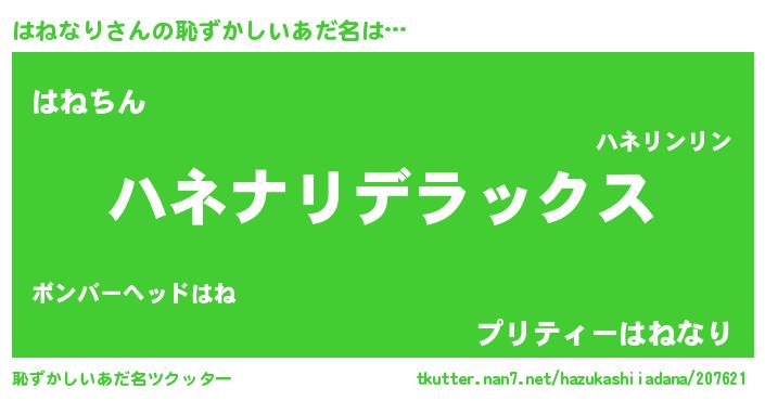 | ヘコむあだ名 | 『はねなり(苦笑)』『はねにー』 |