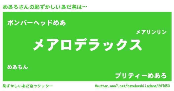 | ヘコむあだ名 | 『めあっふぃ~』『めあ太郎』 |