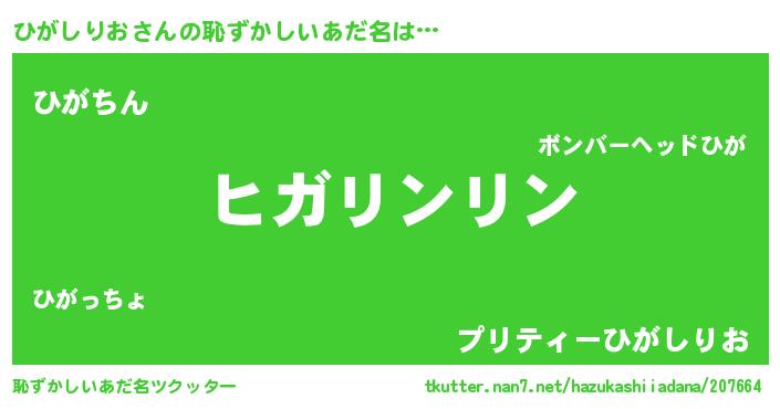 | 意味不明あだ名 | 『住所不定無職ひがしりお(43歳)』 |