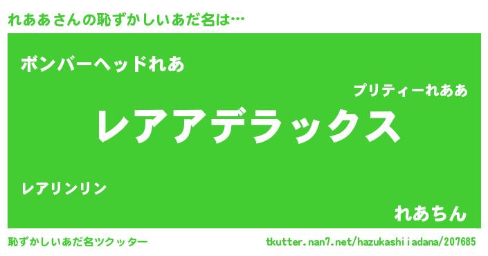 | ヘコむあだ名 | 『れああ(小並感)』『れあにー』 |