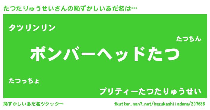 | ヒーロー風カッコイイあだ名 | 『慈愛の使者たつたりゅうせい』 |