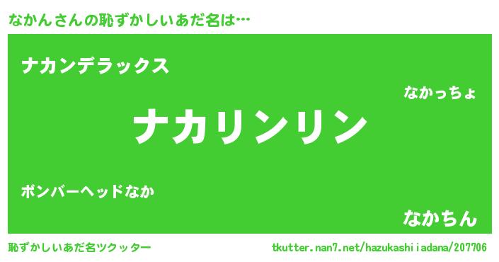 | 男性向けラノベタイトル風あだ名 | 『なかんの嫁は女の子じゃないと思った?』 |