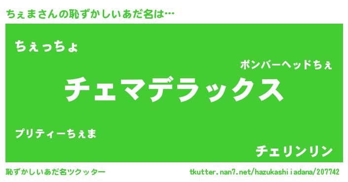 | 意味不明あだ名 | 『自称ちぇま』『ちぇまフォーエバー』 |